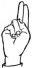 На ћирилици написано БЛАЖА КАИЋ састоји се из 9 слова [?]. Исписано ћириличном једноручном азбуком за глувонеме: